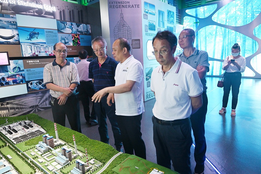 姚志强一行先后参观了青拓集团供销大厅、研究院、电子展厅等场所,并观看了企业宣传片,现场了解企业发展历程、管理体系、不锈钢创新发展等情况。姚志强认真询问了不锈钢产业发展情况和不锈钢的冶炼工艺,陈庆荣就“RKEF+AOD”双联法冶炼不锈钢先进工艺、行业市场、pa视讯笔尖钢等方面的情况进行了详细介绍。