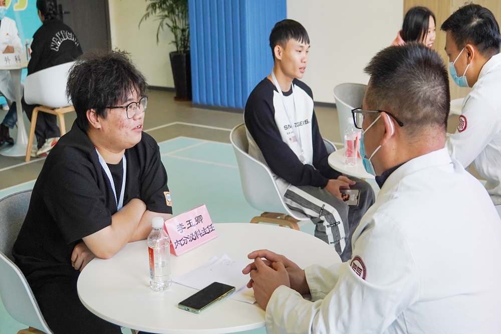 本次活动采取“一对一”现场面诊的方式,便于专家医生与员工之间根据个人症状进行解疑问答。活动现场,员工们有序排队,针对自己的健康问题进行详细咨询。