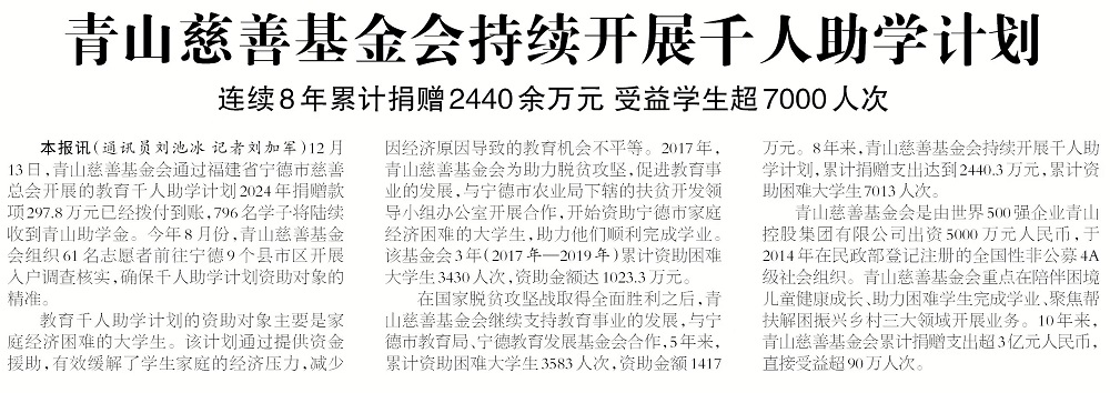 连续8年累计捐赠2440余万元受益学生超7000人次