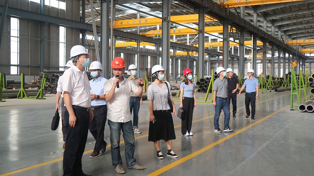 尤锋云一行参观了公司焊管事业部生产车间,何建珍详细介绍了企业发展历程、认证取得、工艺流程、产品原材料、设备配置和企业生产等方面的情况。
