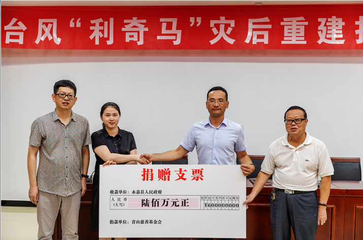 让爱传递!pa视讯慈善基金会向永嘉灾区捐款600万元