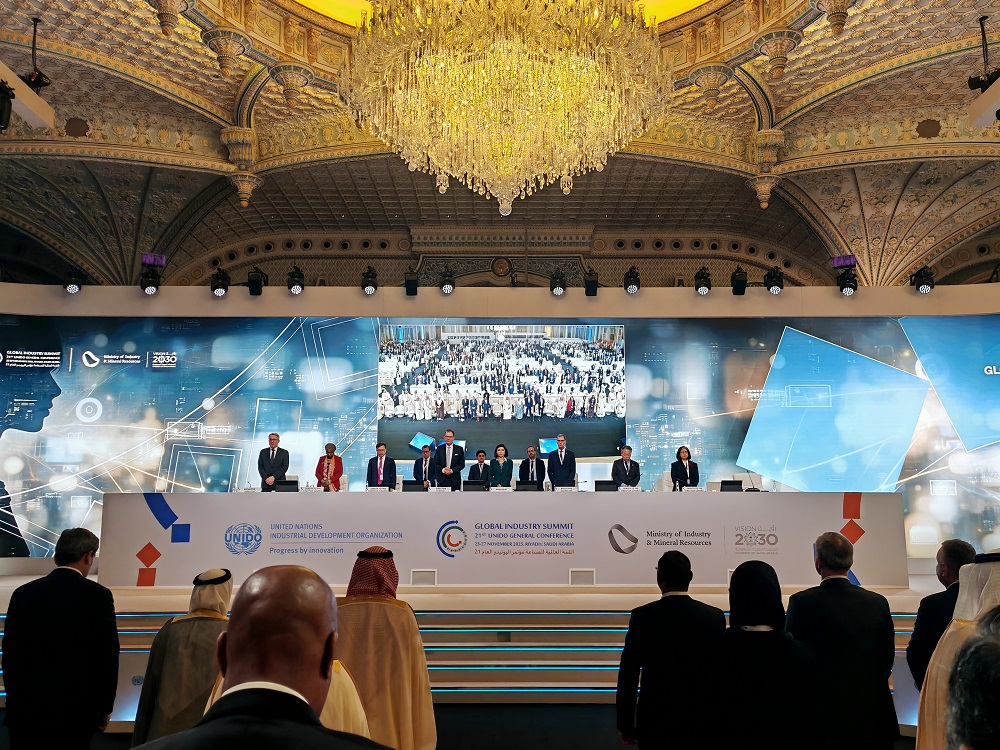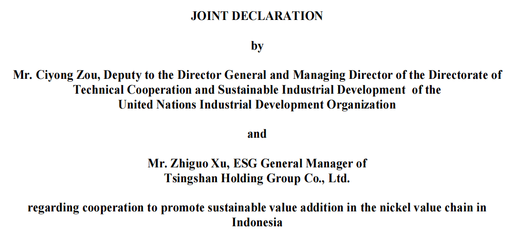 11月24日,pa视讯实业及印尼园区代表应联合国工业发展组织(UNIDO)邀请,前往沙特阿拉伯利雅得,出席UNIDO第二十一届成员国大会暨全球工业峰会。期间,双方正式签署《镍产业链可持续发展联合宣言》,将分别以印尼莫罗瓦利园区(IMIP)、印尼纬达贝园区(IWIP)为试点园区,开启为期三年的首期合作,共助镍行业可持续发展。