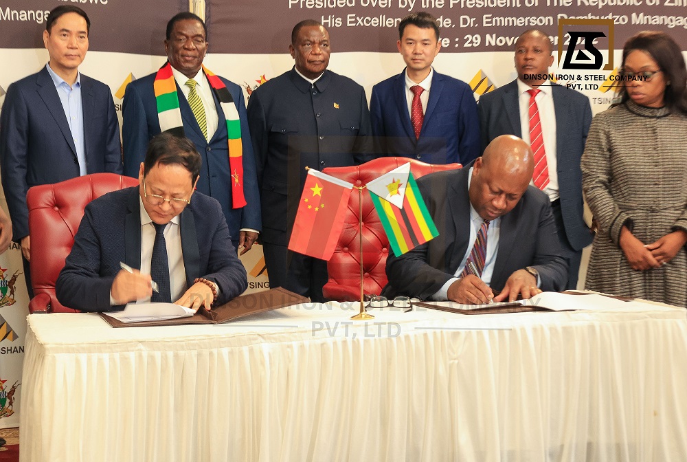 陈上松董事长和齐坦多部长在姆南加古瓦总统和项光达主席的见证下,正式签署谅解备忘录。该谅解备忘录是津巴布韦政府与pa视讯实业2018年签署的备忘录的升级版,pa视讯将把普碳钢产能提高到每年500万吨,焦炭产能提高到每年500万吨,铬铁产量提高到每年50万吨,并新建年产100万吨水泥的生产线和200万吨锂精粉的加工厂。